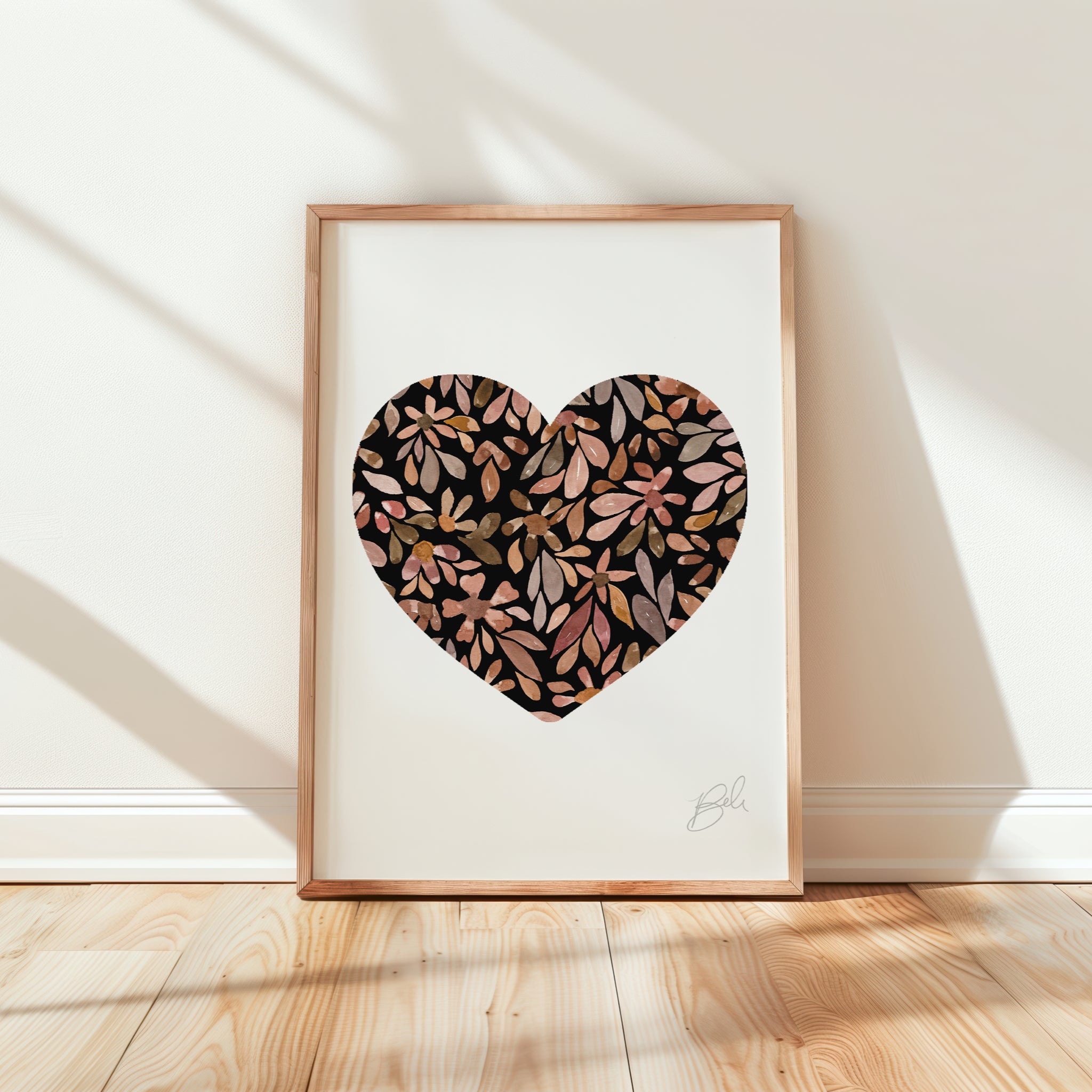 This print comes unframed and signed. It ships flat and bend-proof envelope to ensure it arrives safely. This unique print brings warmth, personality, and charm to your home. It also makes a thoughtful gift for art lovers, those who appreciate floral or love-inspired wall decor—perfect for the hard-to-shop-for friend or family member.